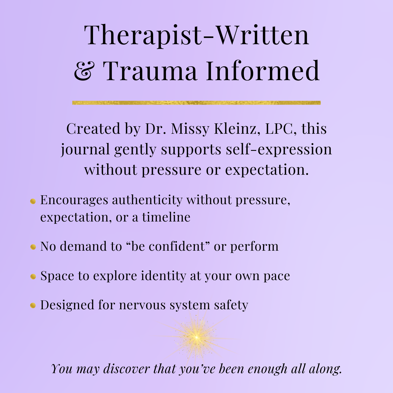 Created by Dr. Missy Kleinz, LPC, this journal uses trauma-informed language to encourage authenticity in a way that prioritizes emotional safety and nervous system care.